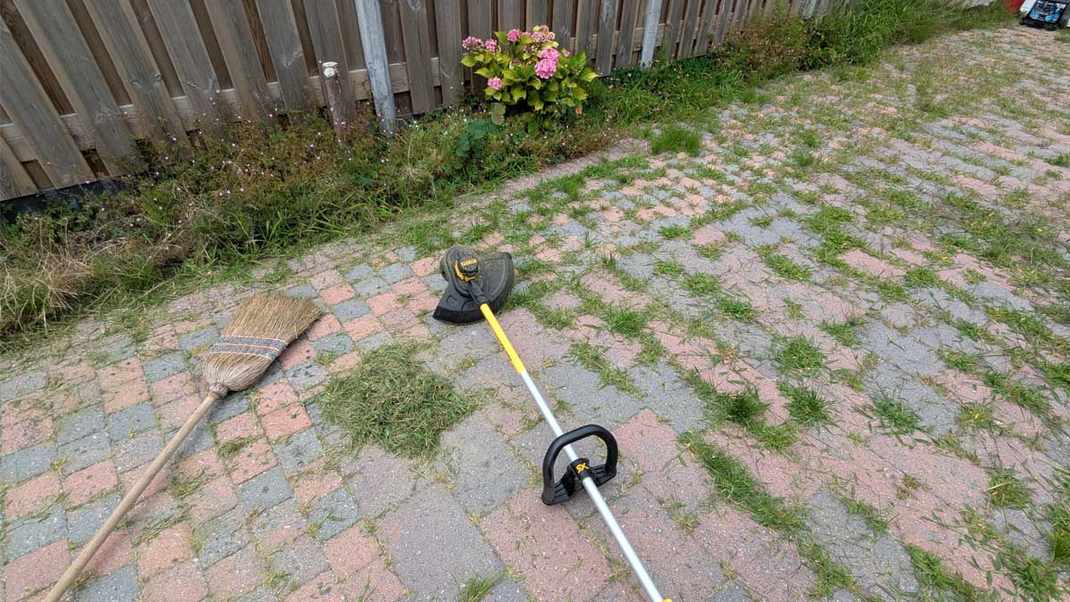 Même avec une barrière efficace, quelques mauvaises herbes percent autour des bordures. Un pulvérisateur sans fil facilite leur traitement localisé.